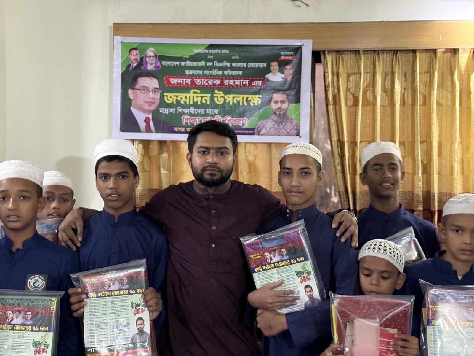 উত্তরায় তারেক রহমানের ৬১ তম জন্মদিন উপলক্ষে মাদরাসা শিক্ষার্থীদের মাঝে শিক্ষা সামগ্রী বিতরণ