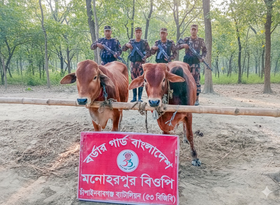 চাঁপাইনবাবগঞ্জে ৫৩ বিজিবির পৃথক অভিযানে ভারতীয় ০৮টি গরু জব্দ