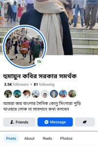 বিভিন্ন আইডি থেকে কুরুচিপূর্ণ মন্তব্য দেখা যায়। যেমন আজ বিকাল ৩টার দিকে অবৈধ দখলদার, অবৈধ ইউনুসের, অবৈধ ডিবি পুলিশ আমার আপনার প্রাণ প্রিয় নেতা হুমায়ূন কবির সরকার কে, এরেষ্ট করতে