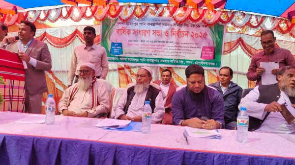 মাহিদুল ইসলাম ফরহাদ চাঁপাইনবাবগঞ্জ জেলা প্রতিনিধি চাঁপাইনবাবগঞ্জে পলশা মহিষপুর পানি ব্যবস্থাপনা সমবায় সমিতির ১৯তম বার্ষিক সাধারণ সভা ও কার্যনির্বাহী পরিষদের ত্রি-বার্ষিক নির্বাচন-২০২৫ অনুষ্ঠিত হয়েছে। শনিবার সকালে সমিতি’র প্রাঙ্গনে অনুষ্ঠিত বার্ষিক