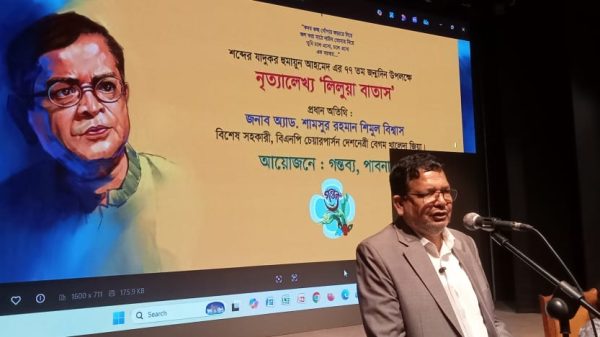 আলমগীর কবীর হৃদয় (পাবনা জেলা প্রতিনিধি) শব্দের জাদুকর, খ্যাতিমান কবি ও ঔপন্যাসিক হুমায়ুন আহমেদ–এর ৭৭তম জন্মবার্ষিকী উপলক্ষে নৃত্যালেখ্য ‘লিলুয়া বাতাস’–এর বিশেষ আয়োজন অনুষ্ঠিত হয়েছে। ১৫ নভেম্বর সন্ধ্যা ৭টায় পাবনা জেলা