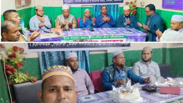 হুমায়ুন কবির।নান্দাইল (ময়মনসিংহ) প্রতিনিধি। ময়মনসিংহের নান্দাইল উপজেলায় দৈনিক ইত্তেফাক প্রতিনিধি মরহুম শাহ আলম ভূইঁয়ার আত্মার মাগফেরাত কামনায় দোয়া ও মিলাদ মাহফিল (১৪ নভেম্বর) শুক্রবার সন্ধ্যায় নান্দাইল প্রেসক্লাব কার্যালয়ে অনুষ্ঠিত হয়েছে।